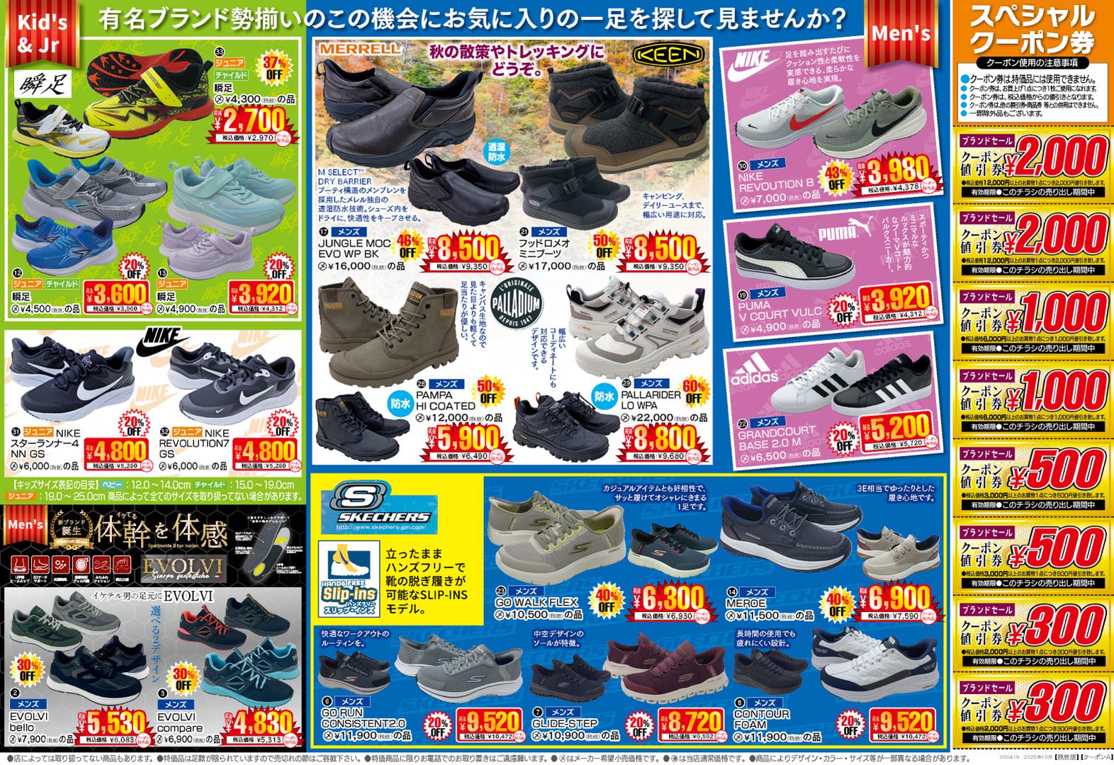 婦人・紳士・子供靴から人気ブランドスニーカーまで豊富に取り揃えております。サイズなど靴選びに迷った際にはお気軽にスタッフまでご相談ください。スタッフ一同、お客様のご来店お待ちしております。