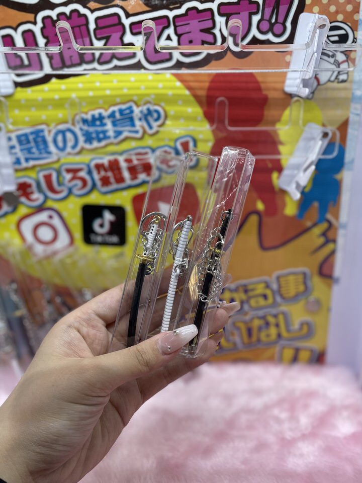 入荷いたしました!人気アニメに出てくるようなデザインの刀があったりするので、男の子に刺さる景品となってます⚔️🖤ぜひGETしに来て下さい♪ご来店お待ちしております🙌🏻