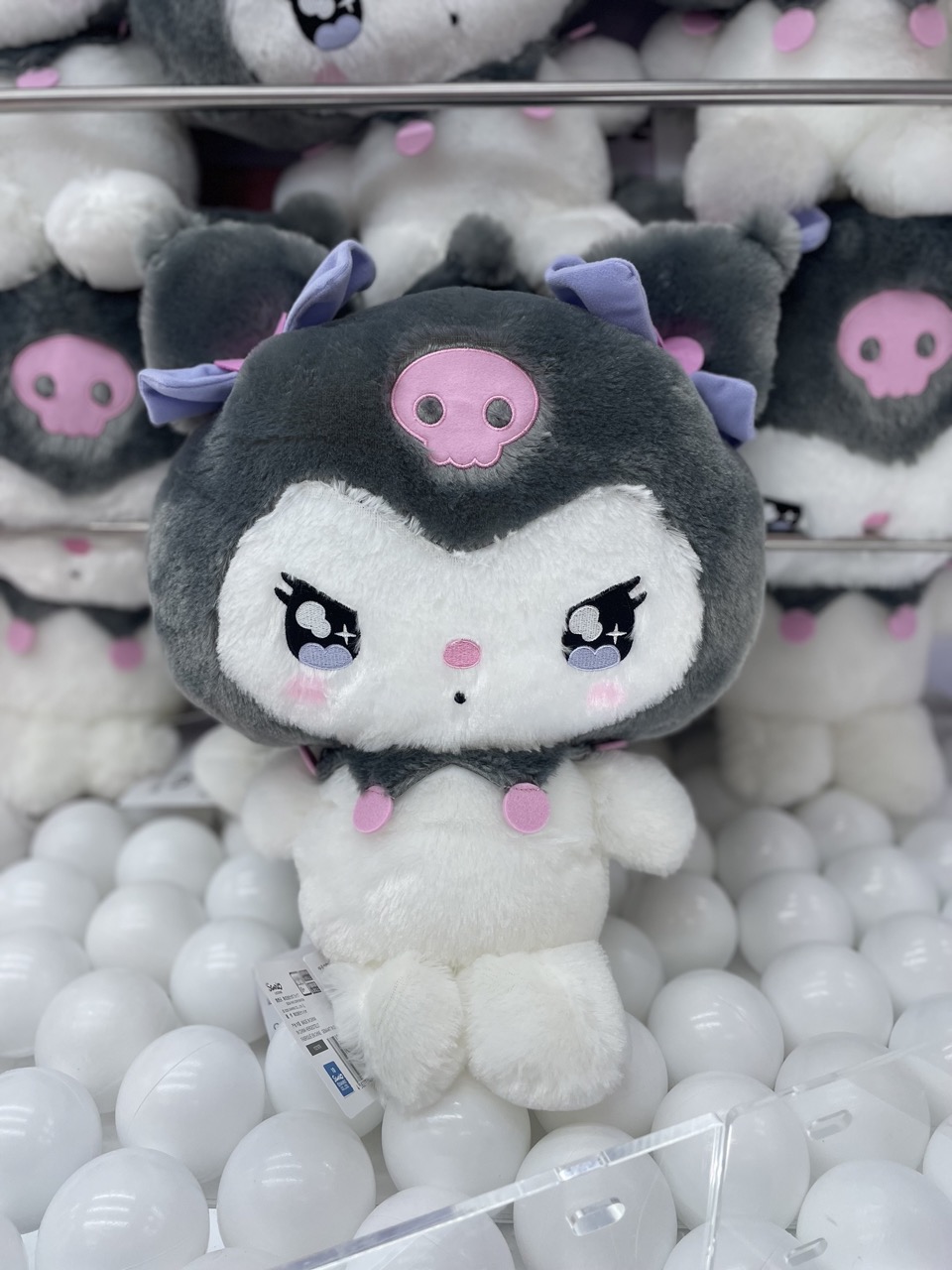 入荷いたしました!大きめサイズのぬいぐるみです♪おめめもきゅるきゅるでチークも塗ってとてもかわいらしいクロミちゃんです🖤🎀ぜひGETしに来て下さい!ご来店お待ちしております➰