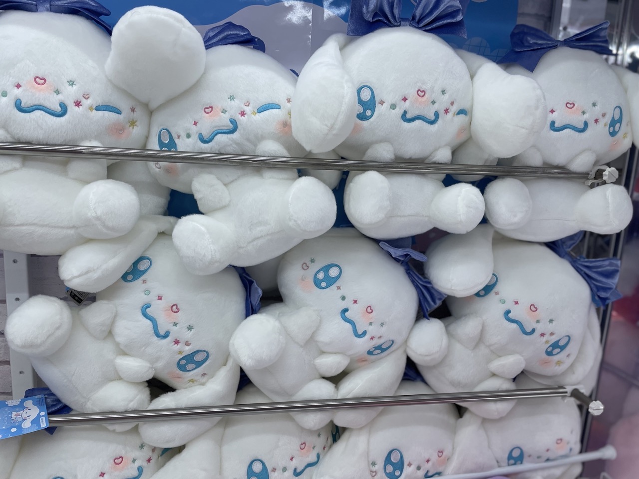 入荷いたしました!キラキラなかわいいそばかすを付けたシナモンのぬいぐるみがきました🩵✨頭の上についたリボンも似合ってますね♪ぜひGETしにきてください!ご来店お待ちしております🙌🏻